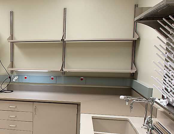 1″ Wall Hanging Systems provide support where no plumbing services are required and provide support for a broad combination of accessories. Double slotted vertical uprights match uprights of Alpha modules allowing component interchangeability. They may be mounted floor-to-ceiling or just used above floor mounted furniture.