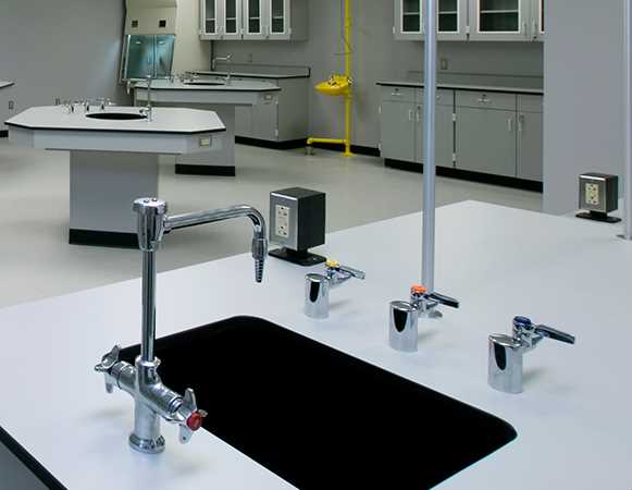 No lab is complete without service fittings supplied by Kewaunee. All fittings are engineered and built for performance and durability. Standard fittings utilize an interchangeable, renewable unit cartridge which incorporates a replaceable stainless steel seat and uses the same cartridge to simplify field maintenance.
