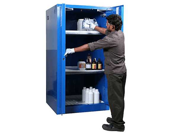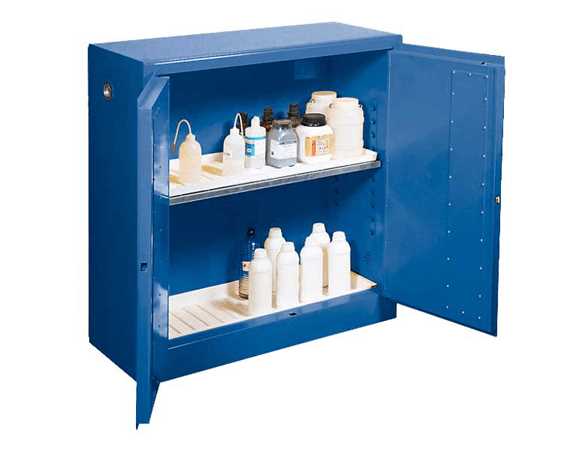 Kewaunee Acid/Corrosive Storage Cabinets are designed and built for the safe storage of corrosive chemicals. These cabinets adhere to Kewaunee’s rigid quality construction standards, and feature: 15 different capacities, three door options, FM approval, and diametrically opposed side vents.