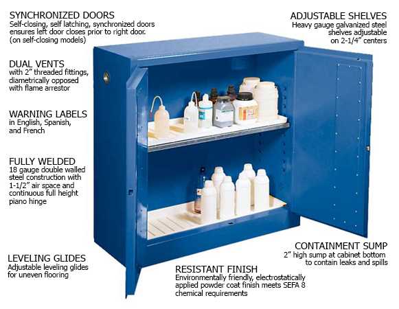 Kewaunee Flammable Storage Cabinets ensure maximum protection for both personnel and products. They are specifically designed for the storage of flammable and combustible liquids. The cabinets are designed to meet NFPA, OSHA, and FM regulations. Available in a full range of sizes and designs including manual, self-closing, and bi-fold self-closing doors.